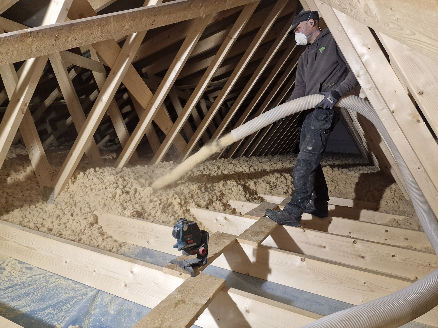 Innblåsing av Nativo Trefiberisolasjon er en rask og effektiv isoleringsløsning for alle typer bygg. Ved bruk av Nativo Trefiberisolasjon Innblåst sparer tømrerne verdifull arbeidstid, da blåseisoleringen gjennomføres av en sertifisert blåseisolatør. På for eksempel et åpent loft kan vi isolere opp til 1000 m2 pr. dag. Dette er ca. dobbelt så raskt som håndisolering.